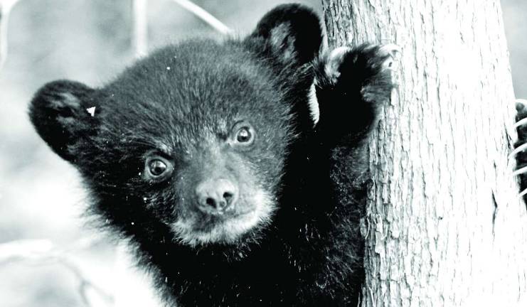 Jeff Crawn photographed this baby bear clinging to a tree and crying for its mother, who was nearby. According to National Geographic, female black bears give birth to two or three blind, helpless cubs in mid-winter and nurse them in the den until spring, when all emerge in search of food. The cubs will stay with their very protective mother for about two years.